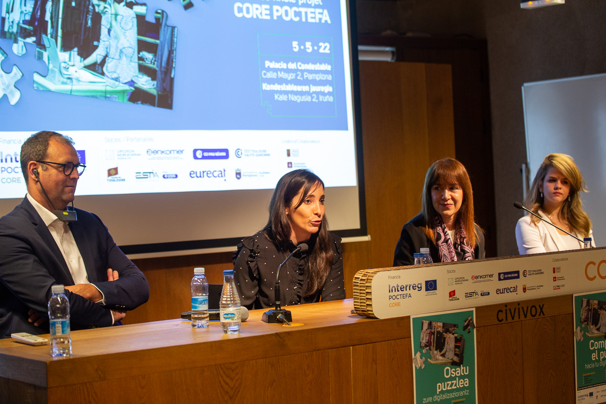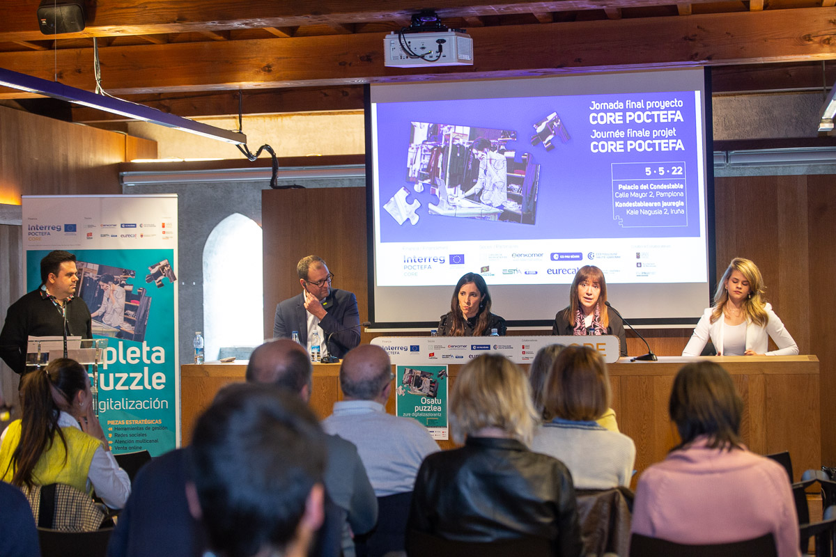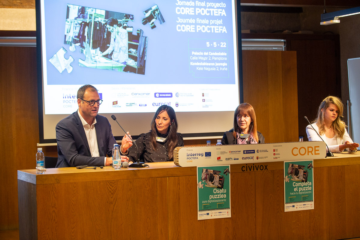 C’était aussi l’occasion de présenter une vidéo avec des témoignages de commerçants de Pampelune, San Sebastián-Donostia et Pau, participant au projet CORE qui, grâce à l’outil d’autodiagnostic et à l’accompagnement dont ils ont bénéficié, ont pu mener avec succès leur processus de numérisation.